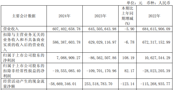 2022年至2024年,明微电子归属于上市公司股东的净利润分别为0.11亿元、-0.87亿元、0.07亿元,归属于上市公司股东的扣除非经常性损益的净利润分别为-0.28亿元、-1.10亿元、-0.20亿元。