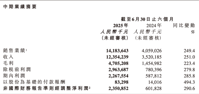 从渠道表现看,这种“贵族路线”正在全面开花。线下41家门店贡献107.36亿元,平均每家店半年营收超过2.6亿元;线上平台虽然起步较晚,但增速更加惊人,收入16.18亿元,同比暴涨313.3%,占比已达13.1%。