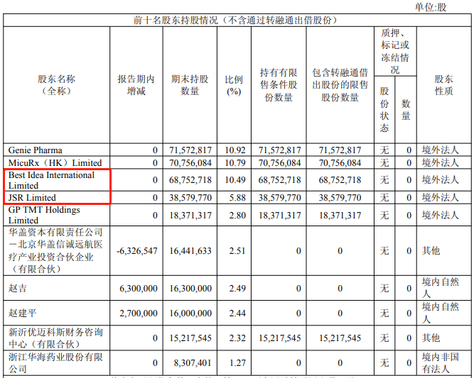 盟科药业2025年半年报显示,公司无控股股东和实际控制人。JSRLimited、BestIdea均为公司的主要股东、发起人。BestIdea、JSRLimited分别为公司第3、4大股东。
