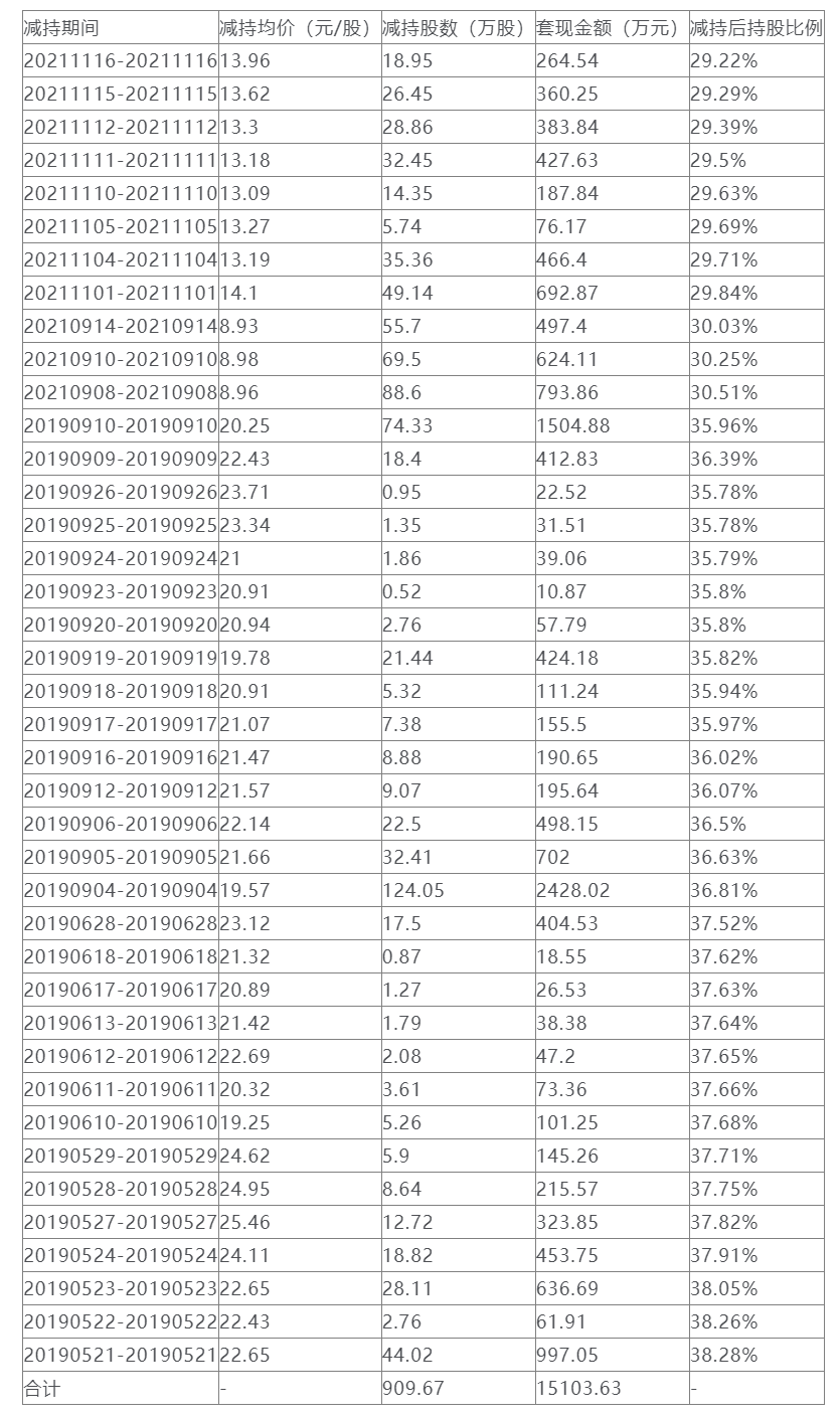 据新浪财经数据显示,王廷春最初持股2585.5万股,占总股本的38.78%。王廷春从2019年5月21日起,第一次减持博济医药股份,迄今为止,累计减持公司股票909.67万股,累计套现约1.51亿元。