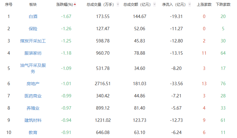 板块方面,半导体、通信设备、其他电源设备等板块涨幅居前,白酒、保险、煤炭开采加工等板块跌幅居前。