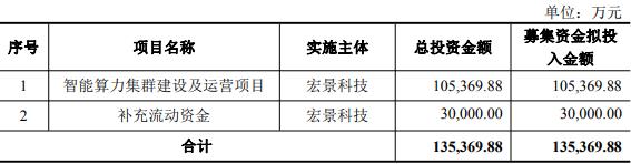 本次募集资金总额不超过135,369.88万元(含本数),扣除发行费用后募集资金净额拟全部用于智能算力集群建设及运营项目、补充流动资金。
