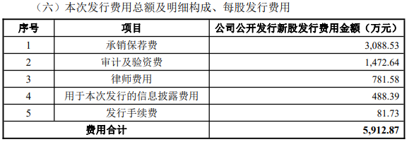 奥锐特上市发行费用为5,912.87万元,其中承销保荐费3,088.53万元。
