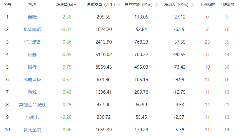 板块方面,贵金属、能源金属、生物制品等板块涨幅居前,保险、机场航运、军工装备等板块跌幅居前。