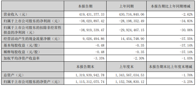 华安鑫创2025年半年度报告显示,2025年上半年,公司实现营业收入4.19亿元,同比下滑2.62%;归属于上市公司股东的净利润-3802.09万元,去年同期为-2819.84万元;归属于上市公司股东的扣除非经常性损益的净利润-3891.93万元,去年同期为-2992.45万元;经营活动产生的现金流量净额为902.65万元。