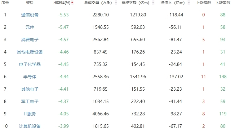板块方面,贵金属、银行、旅游及酒店等板块涨幅居前,通信设备、元件、消费电子等板块跌幅居前。