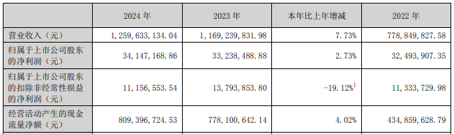 2022年至2024年,德必集团营业收入分别为7.79亿元、11.69亿、12.60亿元;归属于上市公司股东的净利润分别为0.32亿元、0.33亿元、0.34亿元;归属于上市公司股东的扣除非经常性损益的净利润分别为0.11亿元、0.14亿元、0.11亿元。