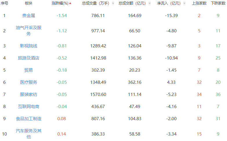 行业板块方面,元件、半导体、通信设备等板块涨幅居前,贵金属、油气开采及服务、影视院线等板块跌幅居前。