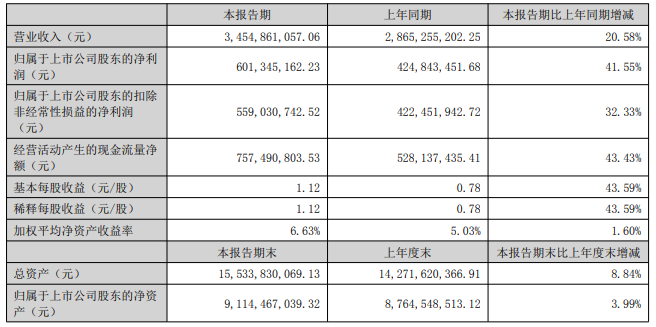 扬杰科技2025年半年度报告显示,2025年上半年,公司实现营业收入34.55亿元,同比增长20.58%;归属于上市公司股东的净利润6.01亿元,同比增长41.55%;归属于上市公司股东的扣除非经常性损益的净利润5.59亿元,同比增长32.33%;经营活动产生的现金流量净额为7.57亿元。