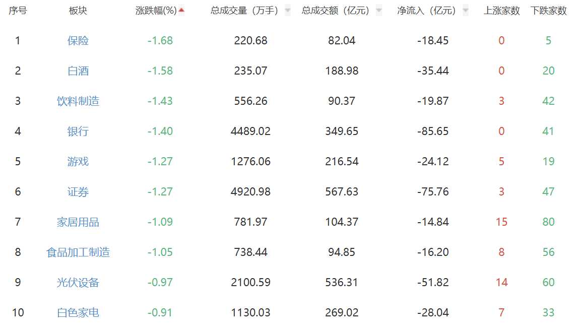A股市场板块涨跌幅排行