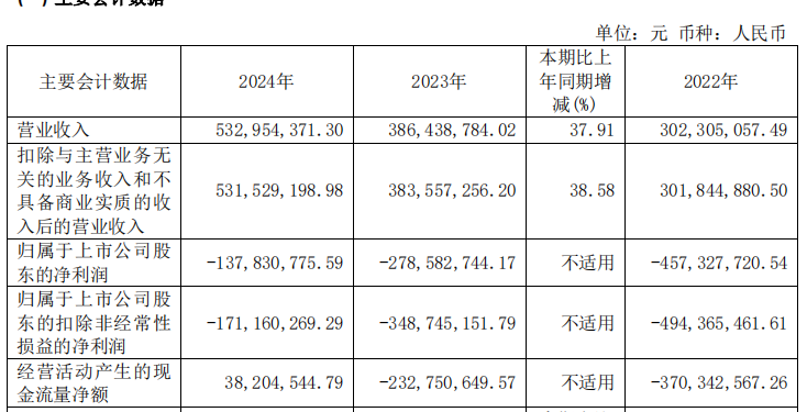2016年至2024年,泽璟制药实现归属于上市公司股东的净利润分别为-1.28亿元、-1.46亿元、-4.40亿元、-4.62亿元、-3.19亿元、-4.51亿元、-4.57亿元、-2.79亿元、-1.38亿元。