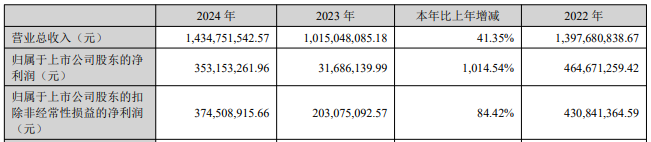2022年至2024年,华林证券营业收入分别为13.98亿元、10.15亿元和14.35亿元,同比分别增长0.17%、-27.38%和41.35%。归母净利润分别为4.65亿元、3168.61万元和3.53亿元,分别同比增长-3.94%、-93.18%和1014.54%。