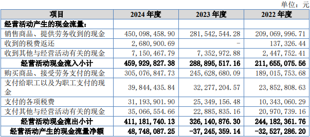 报告期内,世昌股份销售商品、提供劳务收到的现金分别为20,907.00万元、28,154.25万元、45,009.85万元;经营活动产生的现金流量净额分别为-3,252.73万元、-3,724.54万元、4,874.81万元。
