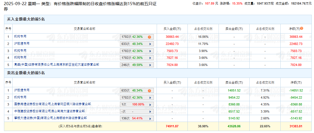 聚辰股份涨15.35% 机构净买入3.59亿元
