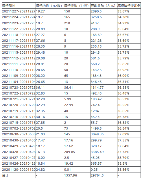 据新浪财经信息,数据显示,GUICHAO HUA最初持股5127.46万股,占总股本的38.84%。GUICHAO HUA从2020年11月20日起,第一次减持英飞特股份,迄今为止,累计减持公司股票1357.96万股,累计套现约2.98亿元。