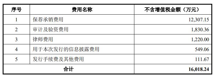 友升股份本次公开发行新股的发行费用合计16,018.24万元(不含增值税),其中,保荐承销费用12,307.15万元。