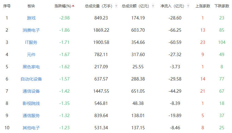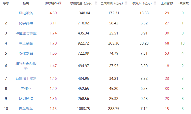 板块方面,风电设备、化学纤维、种植业与林业等板块涨幅居前,游戏、消费电子、IT服务等板块跌幅居前。