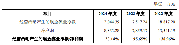 2023年、2024年,云汉芯城销售商品、提供劳务收到的现金及经营活动产生的现金流量净额均下降。2022年至2024年,公司销售商品、提供劳务收到的现金分别为478,996.45万元、300,220.12万元、284,543.55万元,经营活动产生的现金流量净额分别为18,817.20万元、7,517.24万元、2,044.39万元,净现比分别为1.34、0.96、0.23。