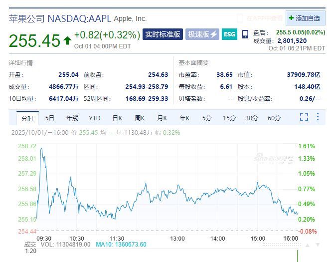 当地时间10月1日,美股三大指数集体收涨,道指涨0.09%,纳指涨0.42%,标普500指数涨0.34%。