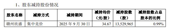 金力永磁公告显示,2025年9月30日减持均价为34.67元/股,经计算,赣州欣盛减持金额为4.69亿元。