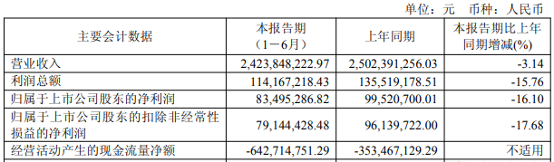 2025年上半年,柏诚股份实现营业收入24.24亿元,同比下降3.14%;归属于上市公司股东的净利润0.83亿元,同比下降16.10%;归属于上市公司股东的扣除非经常性损益的净利润0.79亿元,同比下降17.68%;经营活动产生的现金流量净额-6.43亿元,上年同期为-3.53亿元。