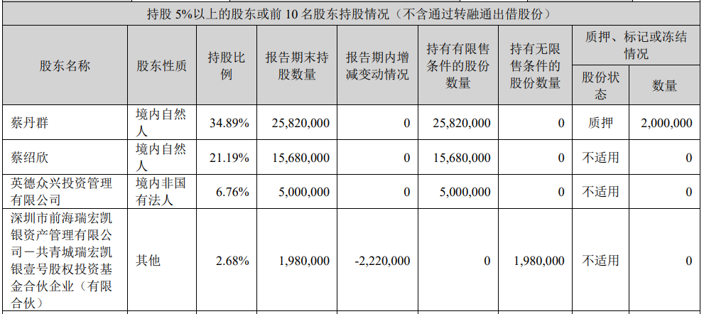 公司近日收到股东共青城瑞宏凯银壹号股权投资基金合伙企业(有限合伙)的《减持计划告知函》,上述股东计划减持公司股份不超过1,980,000股,即不超过公司总股本的2.6757%。其中,拟通过集中竞价方式减持公司股份不超过740,000股(即不超过公司总股本的1.0000%),拟通过大宗交易方式减持公司股份不超过1,240,000股(即不超过公司总股本的1.6757%)。