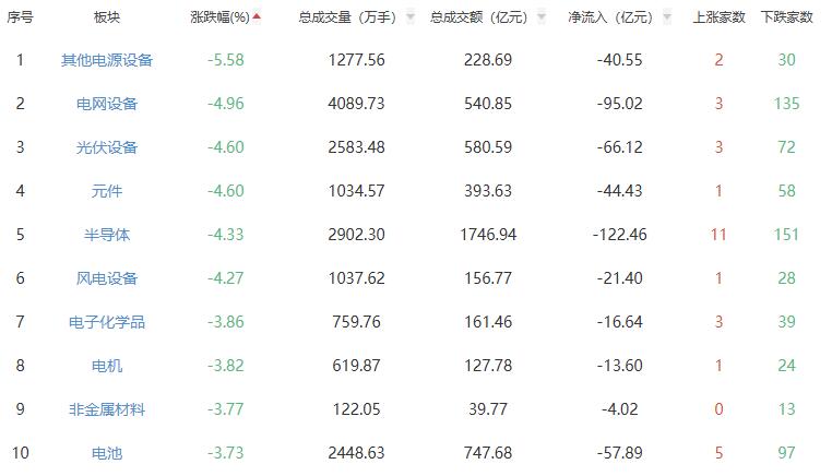 板块方面,贵金属、燃气、机场航运、油气开采及服务、港口航运上涨,其他电源设备、电网设备、光伏设备等跌幅居前。