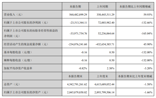 2024年,公司营业收入16.99亿元,同比增长113.70%;归属于上市公司股东的净利润3069.92万元,同比下滑91.01%;归属于上市公司股东的扣除非经常性损益的净利润-723.29万元,上年同期为3.13亿元;经营活动产生的现金流量净额-1.10亿元。