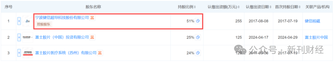 2023年公司对第五大客户苏州柏尔特销售金额为2363万元,占比5.24%,苏州柏尔特是公司持有51%股权的子公司(详见如下图片所示),系公司关联方,富士胶片集团系苏州柏尔特的合营方,GE医疗的子公司通用电气医疗创业投资(杭州)有限持有公司3.10%股权。