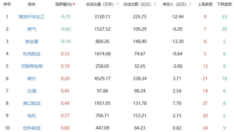 A股市场板块涨跌幅排行