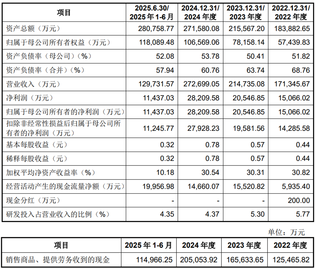 上述同期,公司销售商品、提供劳务收到的现金分别为125,465.82万元、165,633.65万元、205,053.92万元;经营活动产生的现金流量净额分别为5,935.40万元、15,520.82万元、14,660.07万元。