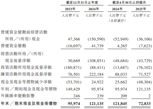 于2023年,旺山旺水产生的经营活动所得现金为人民币30.7百万元。于2024年以及2024年及2025年首四个月,旺山旺水分别录得经营活动现金净流出为人民币108.9百万元、人民币48.7百万元及人民币43.7百万元。