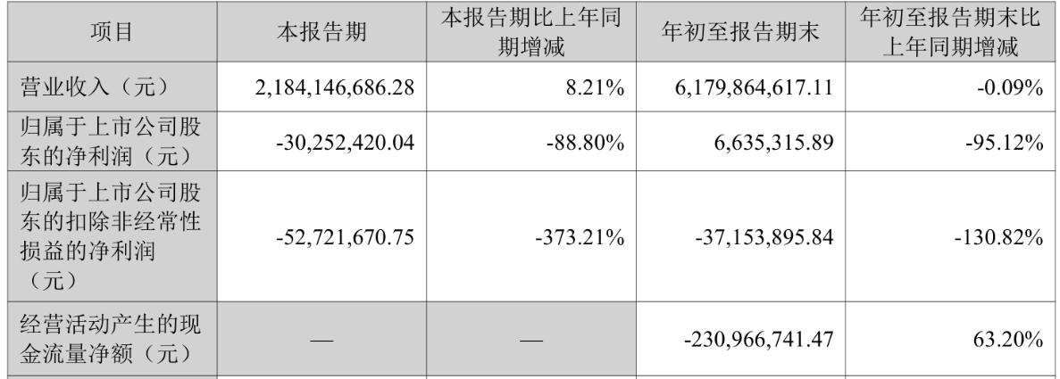 中国经济网北京11月7日讯 鑫铂股份(003038.SZ)近日披露2025年第三季度报告。前三季度,公司实现营业收入61.8亿元,同比下降0.09%;归属于上市公司股东的净利润为663.53万元,同比下降95.12%;归属于上市公司股东的扣非净利润为-3715.39万元,上年同期为1.21亿元;经营活动产生的现金流量净额为-2.31亿元,上年同期为-6.28亿元。