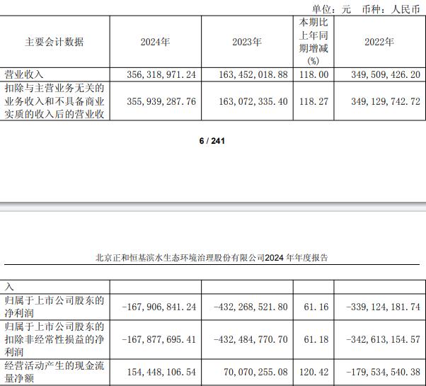 据公司2024年年度报告,报告期内,该公司实现营业收入3.56亿元,同比增长118.00%;实现归属于上市公司股东的净利润-1.68亿元,上年为-4.32亿元;实现归属于上市公司股东的扣除非经常性损益的净利润-1.68亿元,上年为-4.32亿元;经营活动产生的现金流量净额为1.54亿元,同比增长120.42%。