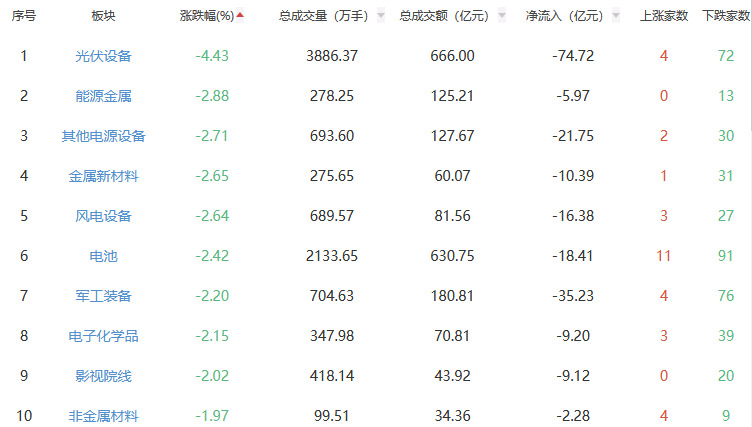 行业板块方面,油气开采及服务、医药商业、保险等板块涨幅居前,光伏设备、能源金属、其他电源设备等板块跌幅居前。