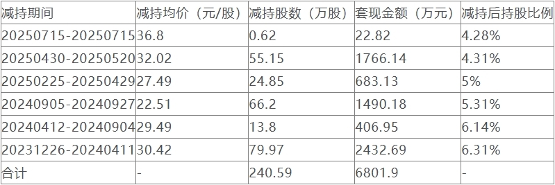 根据新浪财经报道,数据显示,郑朝阳最初持股584.81万股,占总股本的7.31%。郑朝阳从2023年12月26日起,第一次减持聚胶股份股份,迄今为止,累计减持公司股票240.59万股,累计套现约6801.9万元。