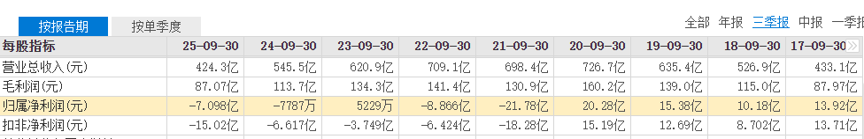 2021年至2024年及2025年前三季度,永辉超市归属于上市公司股东的净利润分别为-39.44亿元、-27.63亿元、-13.29亿元、-14.65亿元、-7.10亿元。4年3季累计亏损102.11亿元。