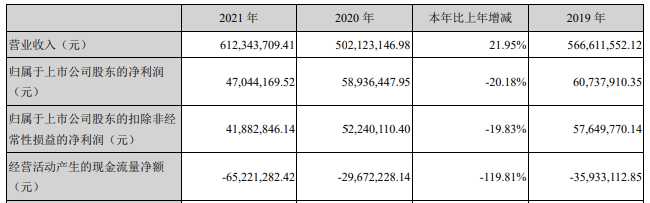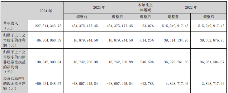 恒锋信息净利连降4年后去年转负,近6年经营活动产生的现金流量净额有5年为负数。2019年至2024年,恒锋信息营业收入分别为5.67亿元、5.02亿元、6.12亿元、5.15亿元、4.84亿元、2.27亿元,归属于上市公司股东的净利润分别为0.61亿元、0.59亿元、0.47亿元、0.39亿元、0.17亿元、-0.87亿元,归属于上市公司股东的扣除非经常性损益的净利润分别为0.58亿元、0.52亿元、0.42亿元、0.37亿元、0.11亿元、-0.91亿元,经营活动产生的现金流量净额分别为-0.36亿元、-0.30亿元、-0.65亿元、0.04亿元、-0.48亿元、-0.59亿元。
