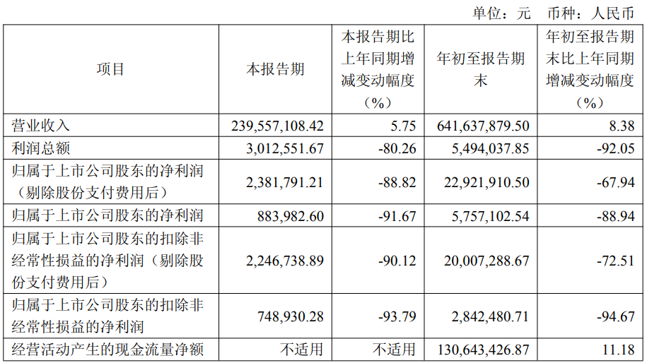 2025年前三季度,统联精密实现营业收入6.42亿元,同比增长8.38%;归属于上市公司股东的净利润575.71万元,同比下降88.94%;归属于上市公司股东的扣非净利润284.25万元,同比下降94.67%;经营活动产生的现金流量净额为1.31亿元,同比增长11.18%。