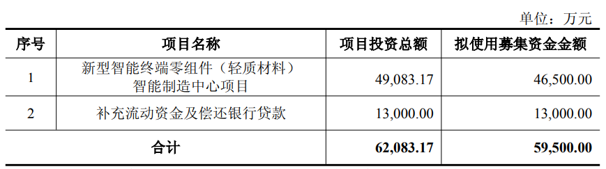 统联精密2025年10月14日披露向不特定对象发行可转换公司债券募集说明书(申报稿)。公司本次发行的可转债所募集资金总额不超过59,500万元(含本数),扣除发行费用后,用于新型智能终端零组件(轻质材料)智能制造中心项目、补充流动资金及偿还银行贷款。