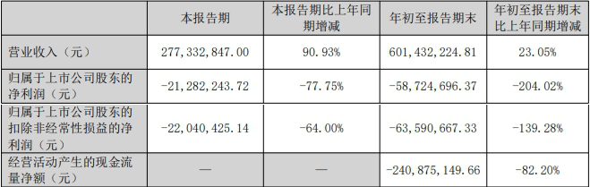 今年前三季度,皖通科技实现营业收入6.01亿元,同比增长23.05%;归属于上市公司股东的净利润-5872.47万元,同比减少204.02%;归属于上市公司股东的扣除非经常性损益的净利润-6359.07万元,同比减少139.28%;经营活动产生的现金流量净额-2.41亿元,同比减少82.20%。