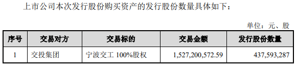 根据经有权国资机构核准的《资产评估报告》,以2024年6月30日为基准日,宁波交工股东全部权益价值的评估值为1,527,200,572.59元。经交易各方友好协商,本次交易宁波交工100%股权的交易作价为1,527,200,572.59元。
