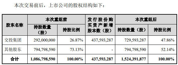 上市公司实施完毕2024年度利润分配方案后,按3.49元/股计算,上市公司本次发行股份购买资产发行的股票数量总计为437,593,287股,占本次发行股份购买资产后公司总股本的28.71%。