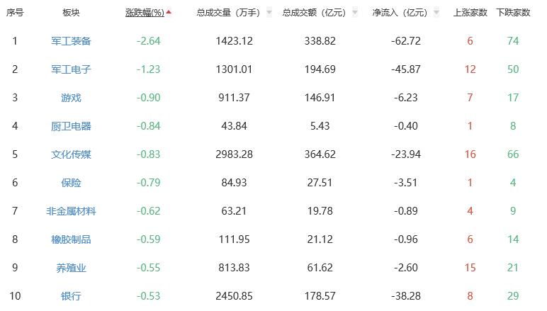 板块方面,医药商业、能源金属、化学制药、半导体等涨幅居前,军工装备、军工电子、游戏、厨卫电器等跌幅居前。