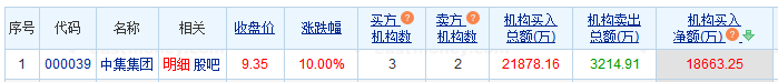 中集集团涨停 机构净买入1.87亿元