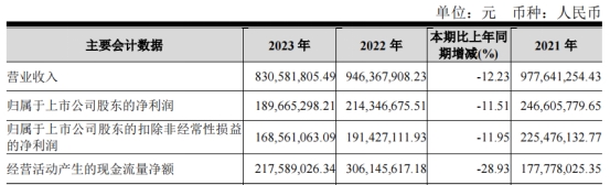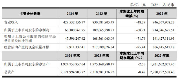 2024年,公司归属于上市公司股东的净利润为6030.06万元,同比下降68.21%;2023年,公司归属于上市公司股东的净利润1.90亿元,同比下降11.51%;2022年,公司归属于上市公司股东的净利润2.14亿元,同比下降13.08%。