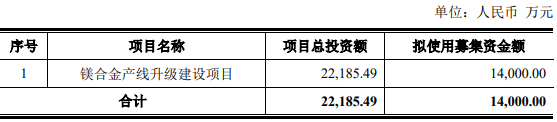 公司本次以简易程序向特定对象发行股票募集资金总额不超过14,000.00万元(含本数),不超过人民币三亿元且不超过最近一年末净资产百分之二十;在扣除相关发行费用后的募集资金净额拟投资于以下项目:镁合金产线升级建设项目。