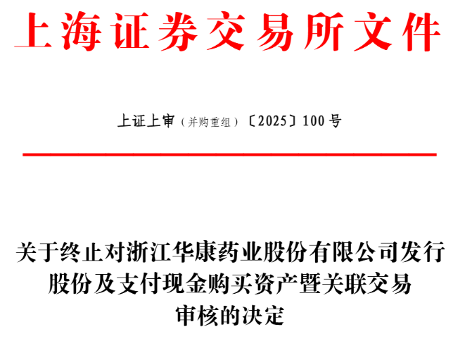 中国经济网北京12月1日讯 上交所网站11月28日披露关于终止对浙江华康药业股份有限公司(以下简称“华康股份”,605077.SH)发行股份及支付现金购买资产暨关联交易审核的决定。上交所决定终止对公司发行股份及支付现金购买资产暨关联交易的审核。