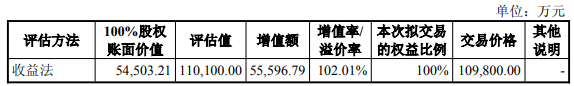 本次交易的评估基准日为2024年12月31日,根据坤元评估出具的《资产评估报告》,标的公司100%股权的评估值为110,100.00万元,比截至2024年12月31日经审计的标的公司合并报表归属于母公司所有者权益增值55,596.79万元,增值率102.01%。