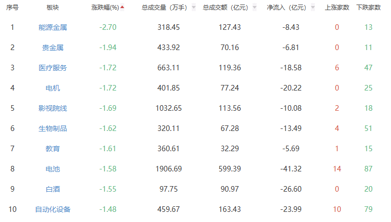 板块方面,医药商业、公路铁路运输、种植业与林业等板块涨幅居前,能源金属、贵金属、医疗服务等板块跌幅居前。